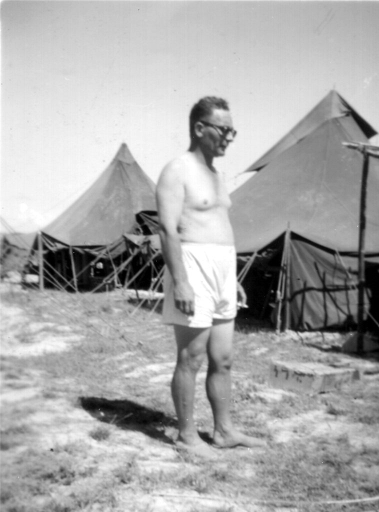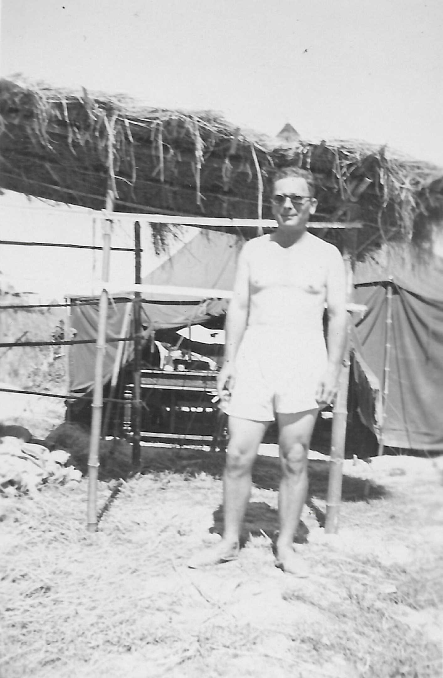 Poses en caleçon et en tenue devant les tentes