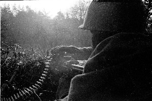 En plus des marches et des exercices de combat normaux, pendant la période de bahutage de la première année, la moindre sanction se transforme en une marche à faire souvent en compagnie de nombreux autres Petits Cos. Côte 123.0, Grande Bosse et le nec plus ultra pour les grands jours, le Bois du Loup (14 km aller-retour). Gare à celui qui n'a pas mis l'enveloppe timbrée à l'adresse des parents dans la poche droite et la boîte de cirage dans la poche gauche du sac à dos. Comme j'étais détenteur dépositaire de l'AA52, fusil-mitrailleur de 11 kg, j'avais la chance de lui faire prendre l'air de temps en temps. Au cours du premier trimestre de ma scolarité, si je me rappelle bien, j'étais le recordman de distance parcourue de la 7ème compagnie. La marche, c'est rudement formateur !